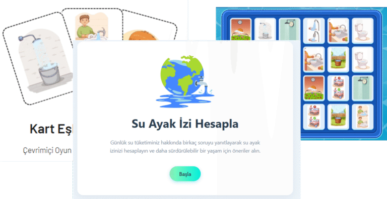 Çocuklarımızın eğlenceli bir şekilde öğrenmelerini sağlayacak “Su Verimliliği Kart Eşleştirme Oyunu” ve günlük ihtiyaçlarımızı karşılarken kullanılan su miktarına ilişkin bilgi sahibi olmalarını sağlayan “Su Ayakİzi Hesaplama Aracı” www.suverimliligi.gov.tr adresinde yer alıyor.